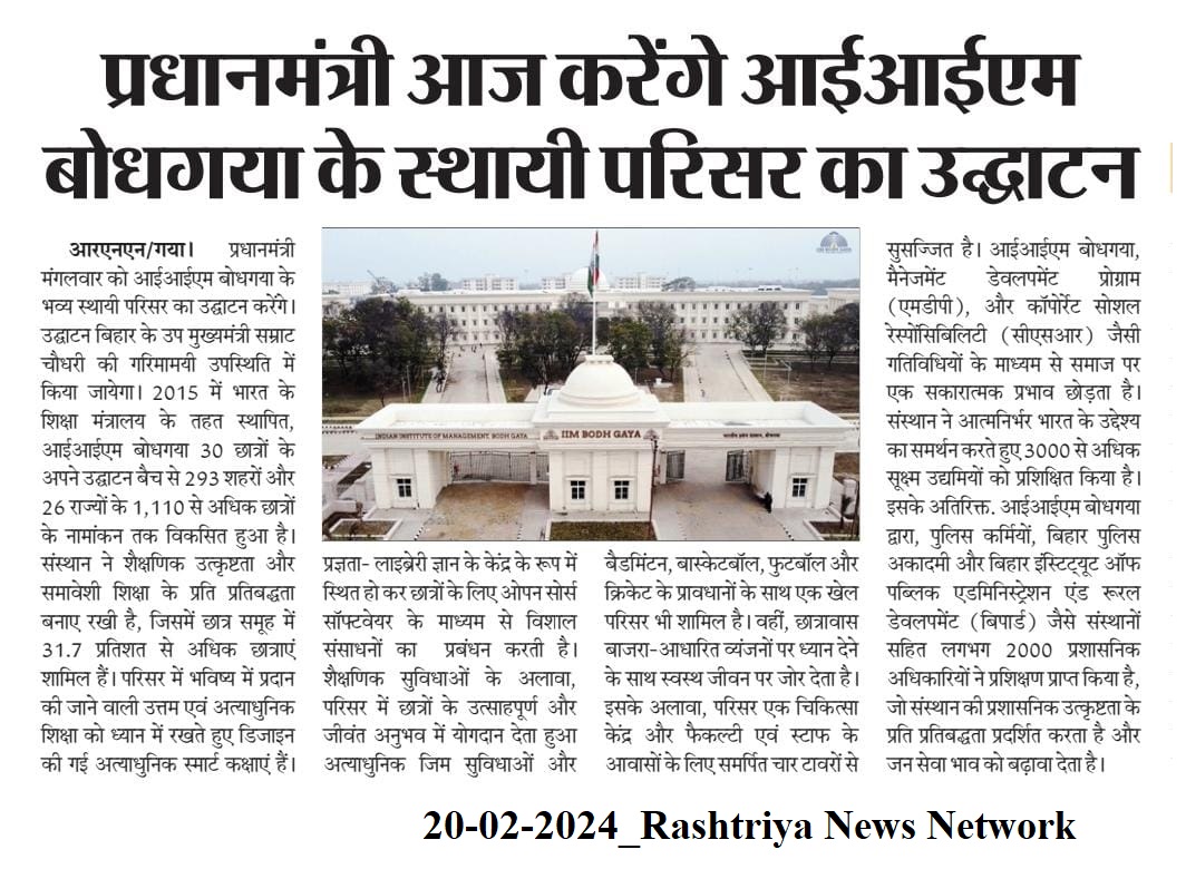 प्रधानमंत्री आज करेंगे आईआईएम बोधगया के स्थायी परिसर का उद्धाटन